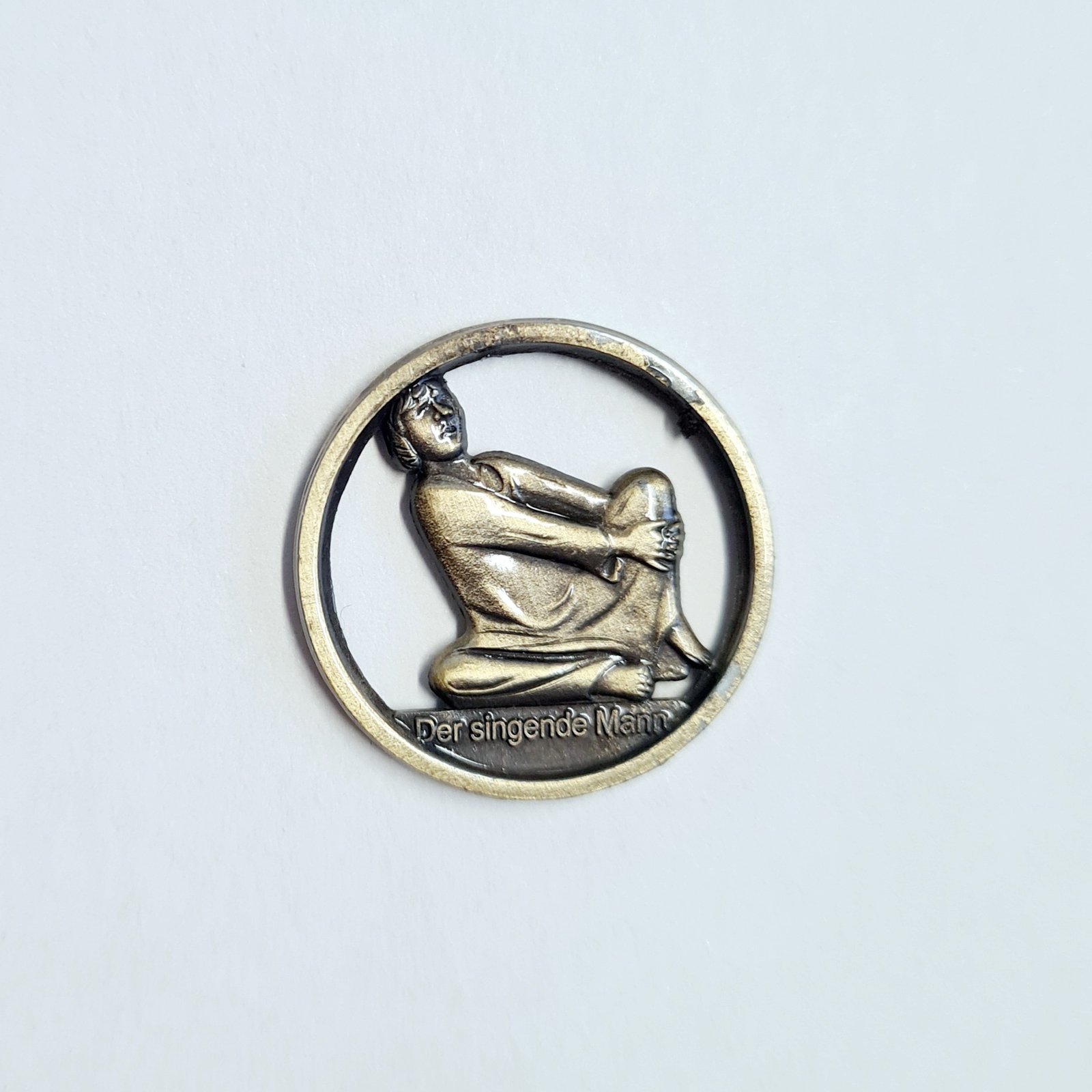 Motiv: Ernst Barlach, Der singende Mann, 1928 (Guss nach 1940), Zink (c) Ernst Barlach Stiftung | Durchmesser: 2,1 cm | Material: Metall